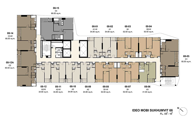 Floor Plan ชั้น 8-18 : ห้องชุดพักอาศัย จำนวน 15 ยูนิต