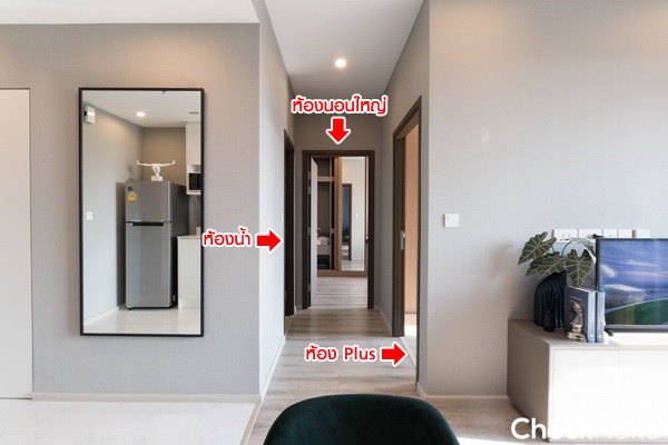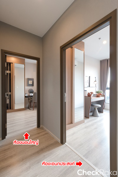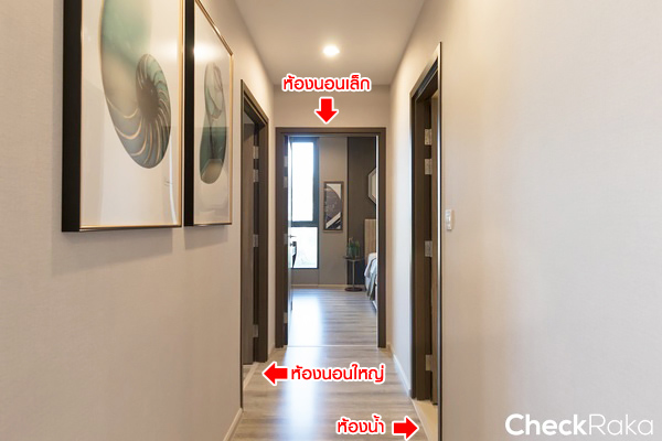ฝั่งซ้ายเป็นห้องนอนใหญ่ และตรงไปเป็นห้องนอนเล็ก