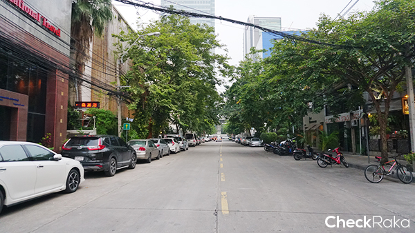 บรรยากาศในซอยค่อนข้างสงบและร่มรื่น