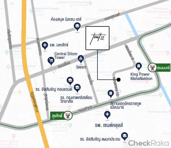 - ที่ตั้งโครงการ : ซอยสาทร 12 ถนนสาทรเหนือ แขวงสีลม เขตบางรัก กรุงเทพมหานคร 10500