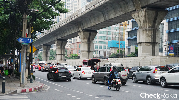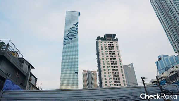 มองขึ้นไปข้างบนจะเห็นตึกมหานครเด่นเลยค่ะ