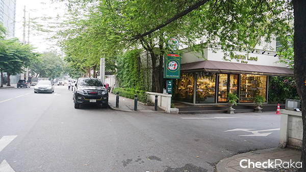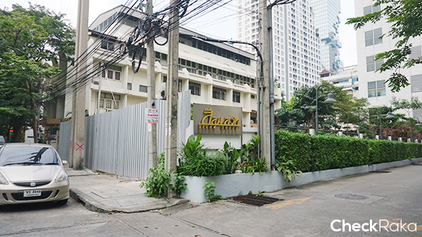 จากปากซอยเดินมาเรื่อยๆ วัดระยะได้ 150 เมตร จะเป็นอาคารสูงประมาณ 4 ชั้น