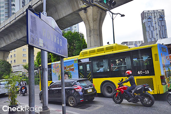 เราจะไม่เข้าไปในซอยทองหล่อนะคะ แต่จะพาเดินเลาะริมถนนสุขุมวิท (มุ่งหน้าเอกมัย) ไปเรื่อยๆ ค่ะ