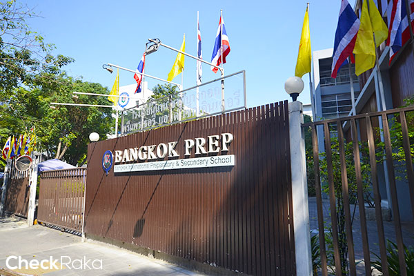 ใช้ BTS ทางออกที่ 1 ค่ะ เดินผ่าน Skywalk มาลงที่หน้าโรงเรียนนานาชาติ บางกอกเพรพ เลย