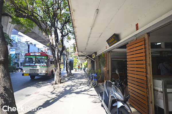 ด้านนี้ร้านรวงจะหนาแน่นคึกคักกว่าฝั่งไปเอกมัยนิดหน่อย