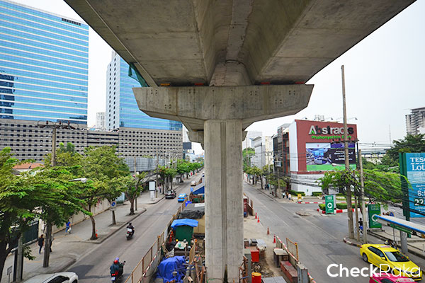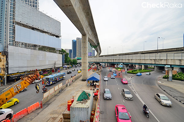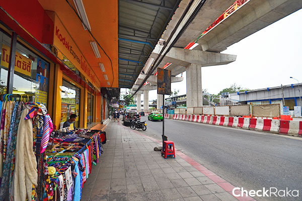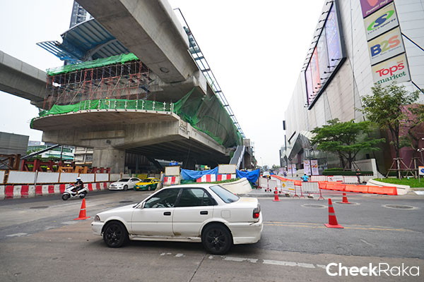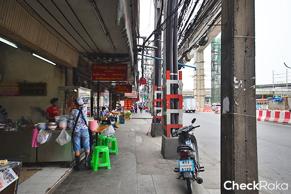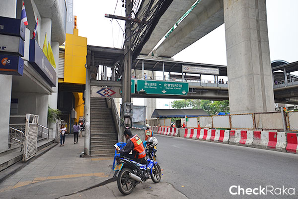 ลงสะพานลอยมาเลี้ยวขวาค่ะ บรรยากาศรอบๆ ก็เป็นพื้นที่ก่อสร้างรถไฟฟ้า คนเดินเท้าก็ต้องระวังๆ กันนิดนึง