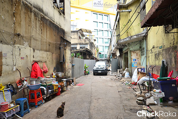เดินกันต่อค่ะ ยังคงมีร้านอาหารเรียงรายอยู่ และแอบเห็นป้ายรื้อถอนอาคารเป็นระยะๆ