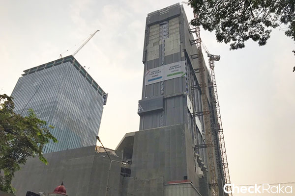 การก่อสร้างกำลังคืบหน้าอย่างรวดเร็ว ตึกซ้ายเป็น Office Building ตึกขวาคอนโด Triple Y Residence