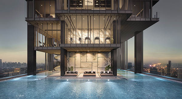 สระว่ายน้ำและส่วนกลาง อลังการงานสร้างสมเป็น Super Luxury Condo