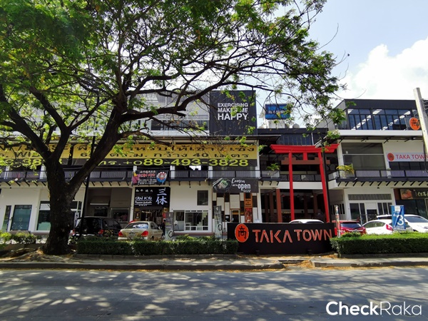 เริ่มจากฝั่งตรงข้ามโครงการเป็น TAKA TOWN มีร้านอาหารให้ฝากท้องยามหิวอยู่หลายร้าน