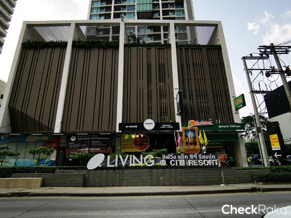 ข้างๆ กันเป็นอาคาร ลิฟวิ่ง แอ็ท ซิตี้ รีสอร์ท มีร้านอาหาร และมินิมาร์ท อีกเช่นกัน