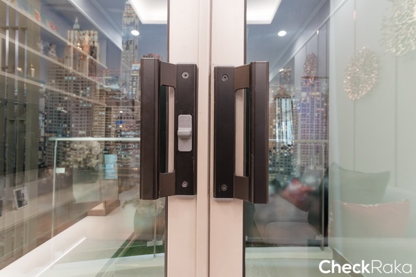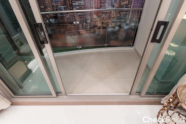 ประตูระเบียงจะคล้ายกับระเบียงที่แล้ว เป็นประตูบานเลื่อน 4 ตอน กระจกลามิเนตสีเขียวตัดแสง