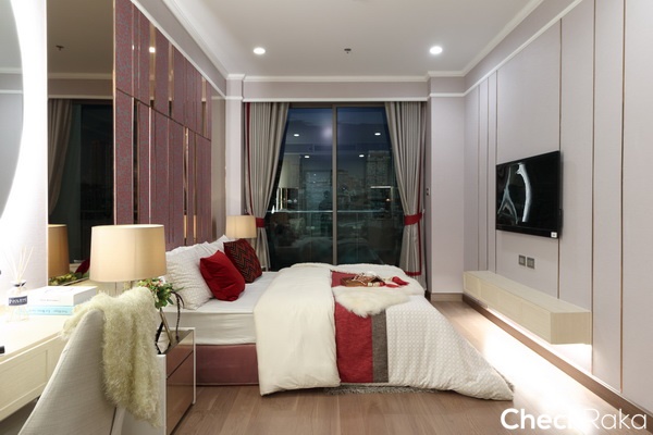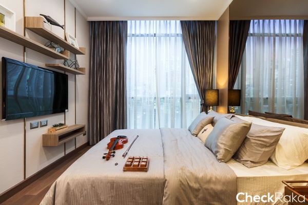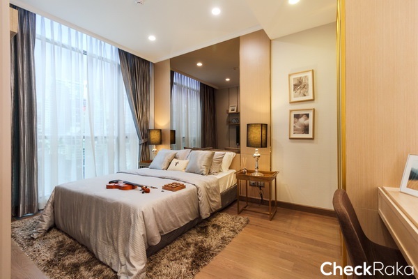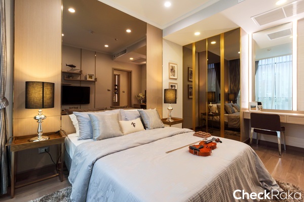 วางเตียงขนาด 6 ฟุตได้ เพราะพื้นที่ค่อนข้างกว้าง วางโต๊ะหัวเตียงได้อีกทั้ง 2 ข้างเลย