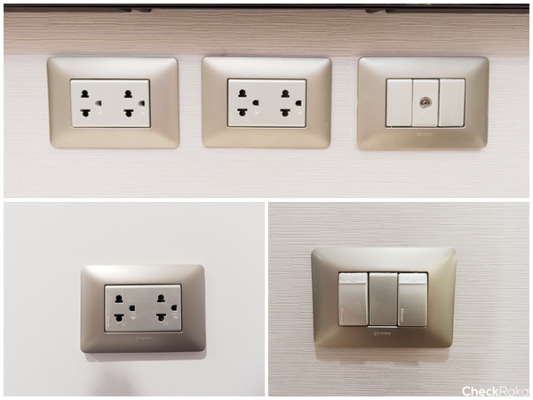 ปลั๊กไฟ และสวิตซ์ไฟโทนสีเงินดูดีสวยงาม