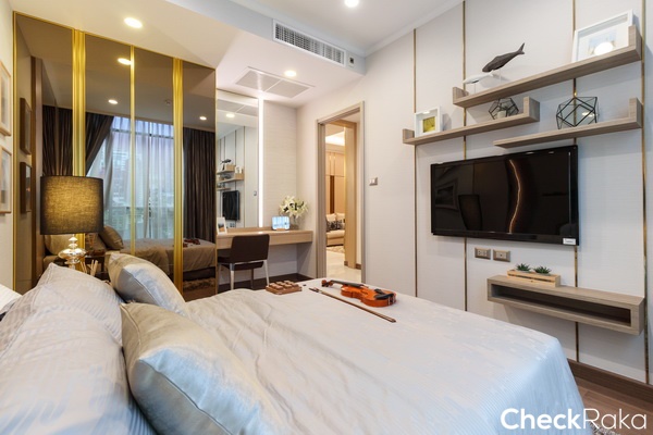 หรือจะ Built-in เป็นชั้นวางทีวีบริเวณปลายเตียง เพื่อเป็นตู้สำหรับเก็บของก็ได้เช่นกัน