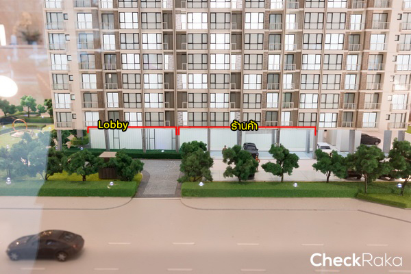 ชั้น Ground ของอาคาร A, B จะมี Lobby และร้านค้าอีกอาคารละ 4 ยูนิต