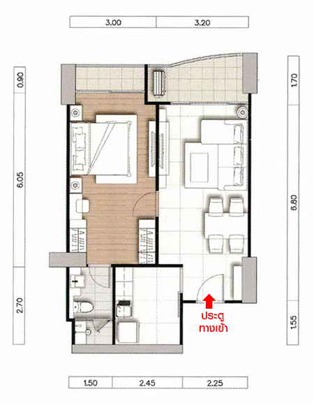 ทางขวาของประตูสามารถวางตู้เก็บรองเท้าได้