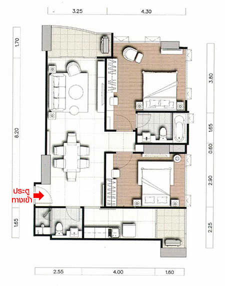 ประตูทางเข้าห้องนอนอยู่ใกล้กับมุมทานอาหาร