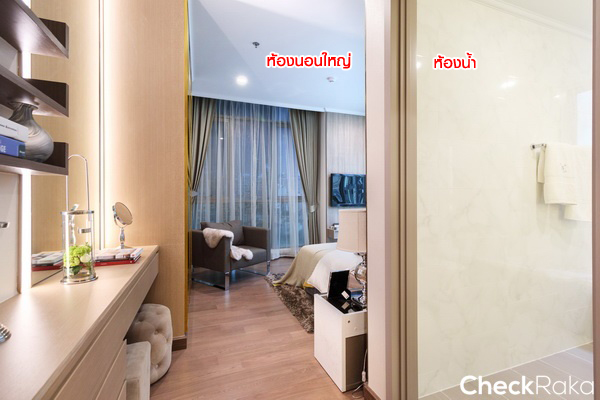 ไปสำรวจห้องนอนใหญ่กันต่อ สำหรับห้องนอนใหญ่จะมีห้องน้ำในตัว