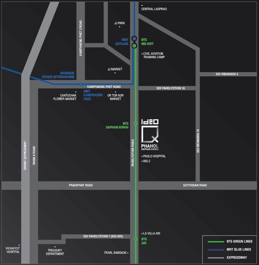 โครงการตั้งอยู่บนถนนพหลโยธิน แขวงสามเสนใน เขตพญาไท กรุงเทพมหานคร ความโดดเด่นของโครงการคือ ที่ตั้งของโครงการนั้นตั้งอยู่ติดกับรถไฟฟ้า BTS สถานีสะพานควายเพียง 0 เมตร ถ้าเดินออกมาจากโครงการก็จะเห็นบันไดทางขึ้น BTS ได้ทันทีเลย และทำเลนี้ก็ขึ้นชื่อเรื่องความอุดมสมบูรณ์ทั้งอาหารการกิน สาธารณูปโภค และการเดินทางที่แสนสะดวกสบายทั้งรถไฟฟ้า รถสาธารณะ และรถยนต์ส่วนตัว