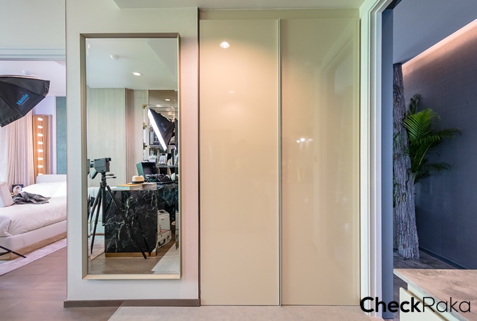 ทางโครงการติดกระจกมาให้ดูเป็นไอเดียทำให้โถงทางเดินที่จะเชื่อมต่อไปห้องนั่งเล่นดูกว้างยิ่งขึ้น