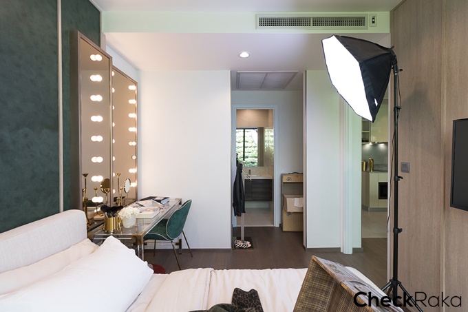 ติดกันเป็นโซนของห้องนอน กั้นด้วยประตูกระจกบานเลื่อนแบบเข้ามุม