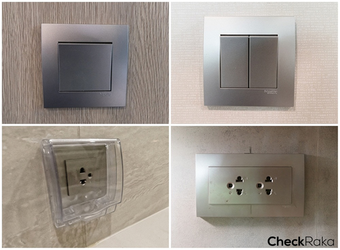 สวิตช์ และ ปลั๊กไฟโทนสีเทาของ Schneider