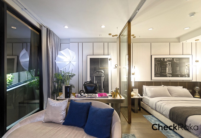 สามารถเปิดประตูเชื่อมต่อระหว่างพื้นที่ห้องนอน และห้องนั่งเล่นเข้าด้วยกัน ขยายพื้นที่พักผ่อนให้กว้างมากยิ่งขึ้น