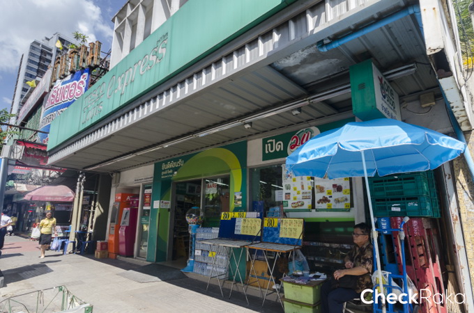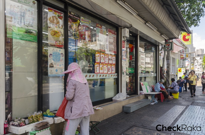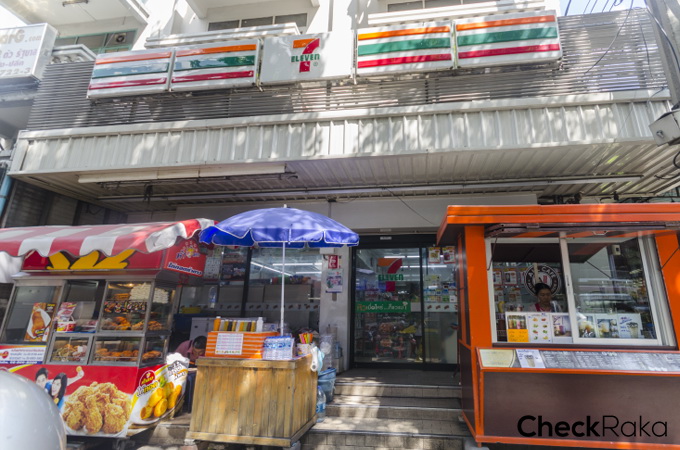 ฝั่งนี้ก็มีเซเว่น อิเลฟเว่น ข้างหน้ามีไก่ย่างห้าดาว และร้านเครื่องดื่ม