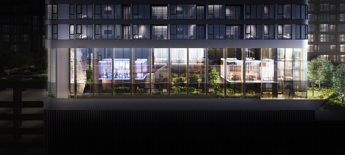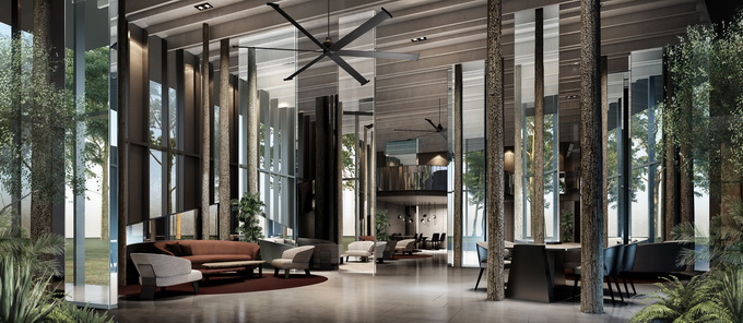 มีการไล่ระดับชั้น ตกแต่งอาคารด้วยต้นไม้และพื้นที่สีเขียว