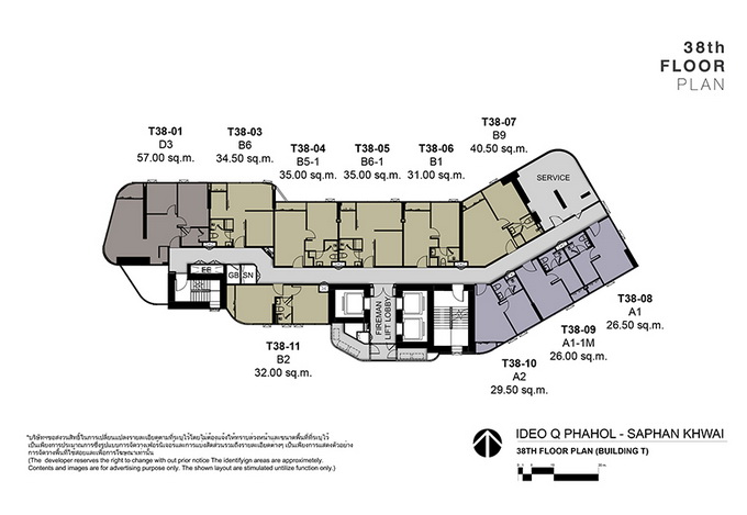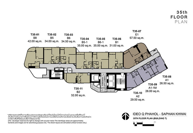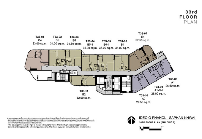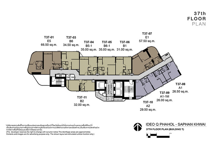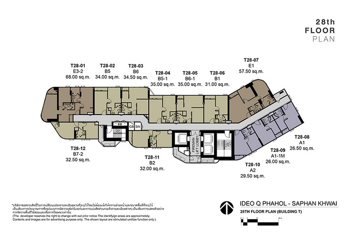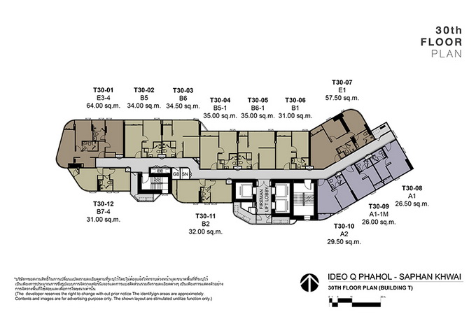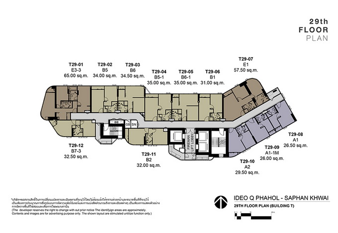 ชั้น 7-26 เป็นห้องพักอาศัย ที่มีตำแหน่งห้องและแบบแปลนเดียวกันหมด