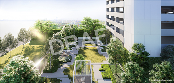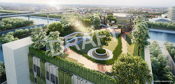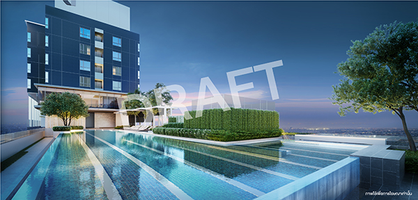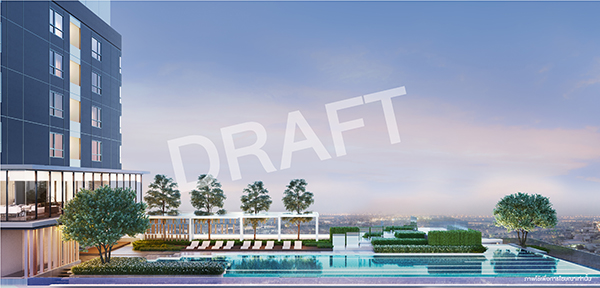 สระว่ายน้ำที่ชั้น 27 วิวดีที่สุดในมีนบุรี สวนบนชั้นดาดฟ้าของอาคารจอดรถ