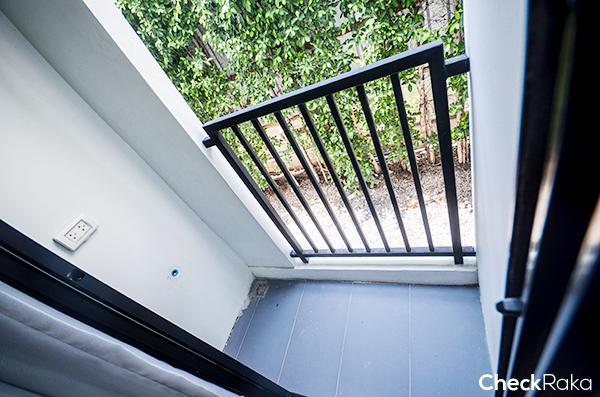ห้องนี้จะมีระเบียงพร้อมรั้วกันตกสีดำ