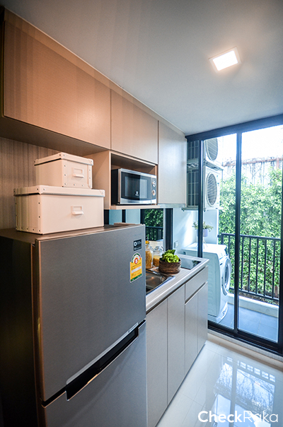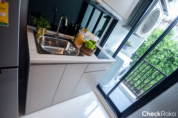ครัวของห้องนี้สามารถเปิดประตูบานเลื่อนเพื่อระบายอากาศได้ด้วยเพราะอยู่ติดระเบียง