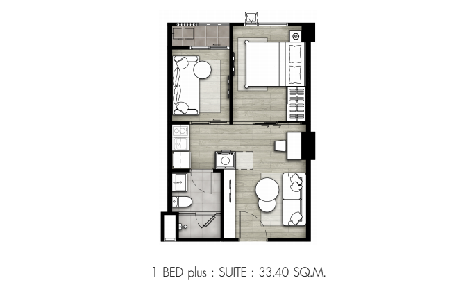- แบบ 1 Bedroom Plus Suite ขนาด 33.30 - 38.80 ตร.ม.