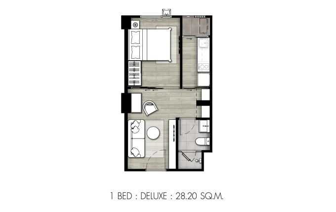 - แบบ 1 Bedroom Deluxe ขนาด 28.40 - 31.70 ตร.ม.