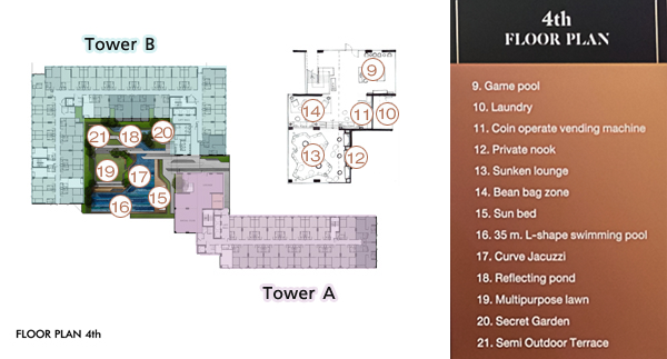 Floor Plan ชั้น 4 : มีทั้งสิ่งอำนวยความสะดวกและห้องพักอาศัย