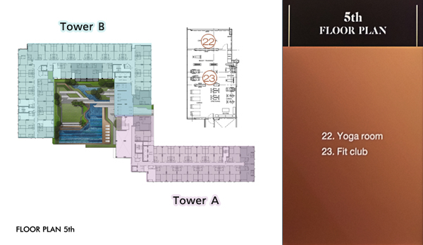 Floor Plan ชั้น 5 : เป็นชั้นที่มีทั้งสิ่งอำนวยความสะดวกบางส่วนและห้องพักอาศัย