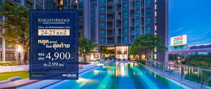 ปัจจุบันโครงการ ไนท์บริดจ์ พหลโยธิน อินเตอร์เชนจ์ สร้างเสร็จเรียบร้อยแล้ว และในวันที่ 24 - 25 สิงหาคมนี้ พบโปรโมชั่นห้องหลุดดาวน์ล็อตสุดท้ายราคาพิเศษ จอง 4,900 บาท*/ ผ่อน 4,900 บาท* ณ สำนักงานขายโครงการ สามารถติดต่อเข้าชมโครงการได้ทุกวัน ตั้งแต่เวลา 10.00 - 19.00 น.