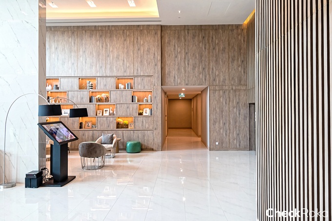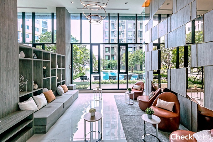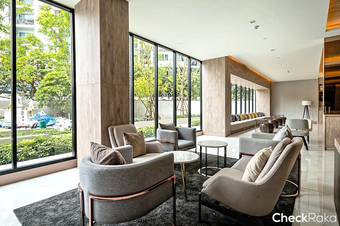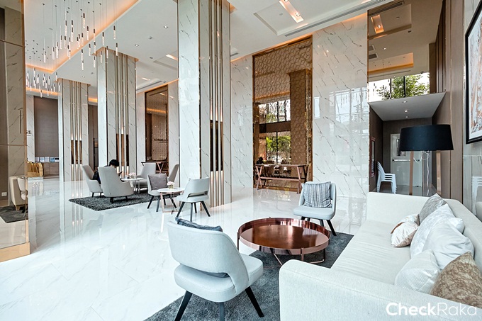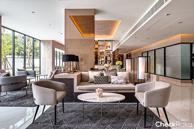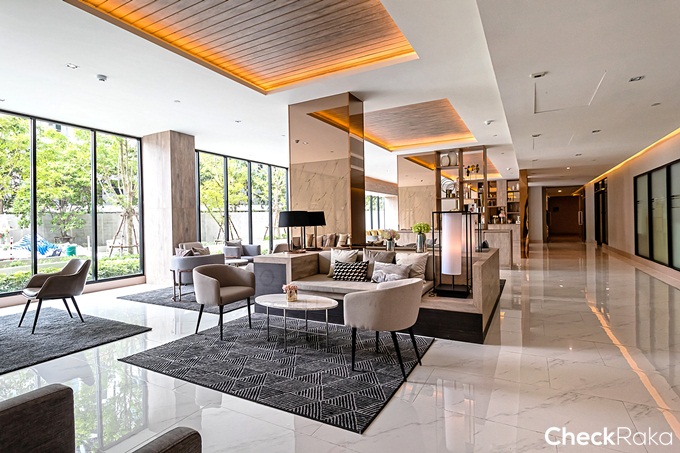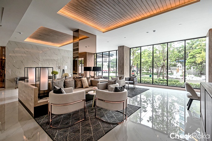 Grand Lobby แบบ Double Volume เพดานสูง 7 เมตร ตกแต่งในสไตล์ Modern Luxury