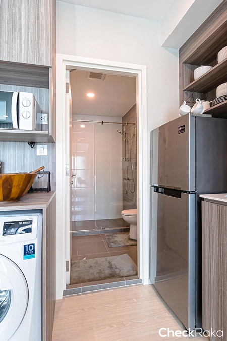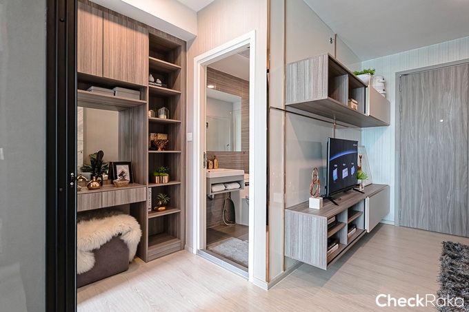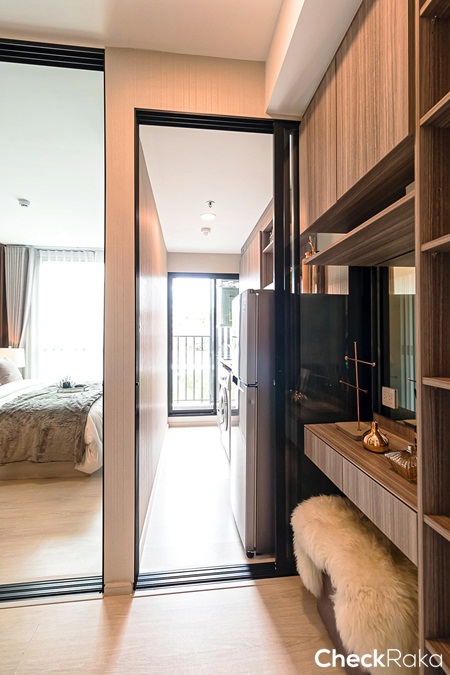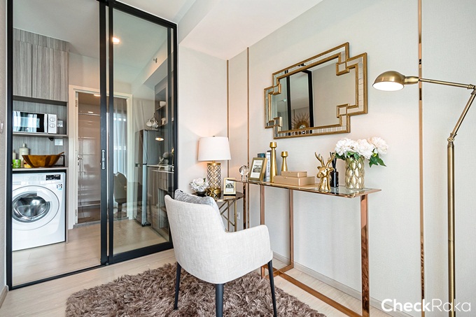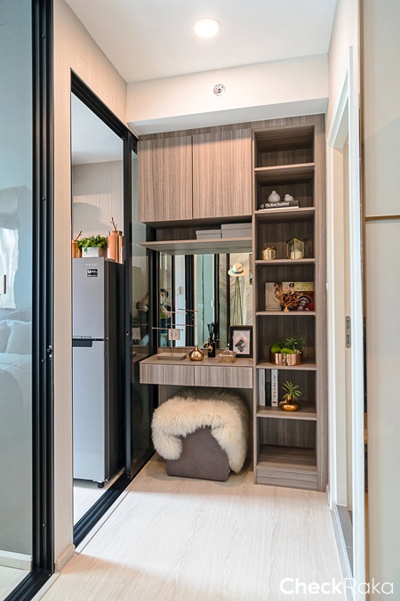ระหว่างห้องครัวกับห้องน้ำทางโครงการออกแบบเป็นโต๊ะเครื่องแป้ง