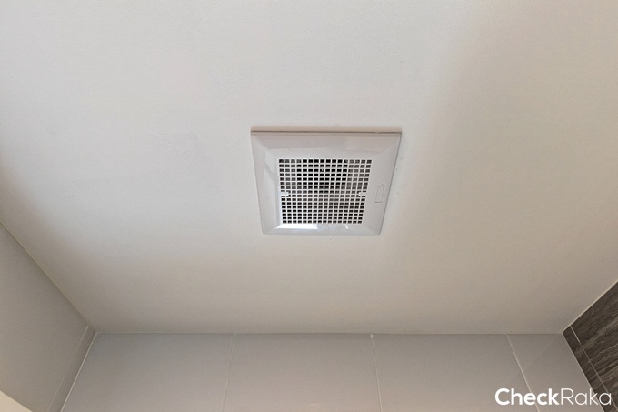 บนเพดานติดตั้งพัดลมดูดอากาศมาให้