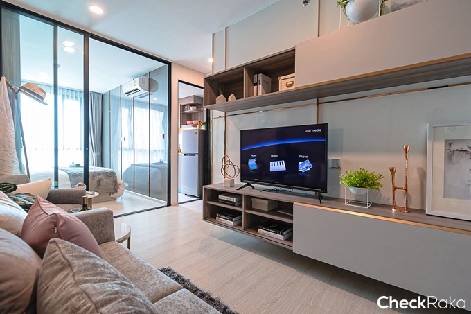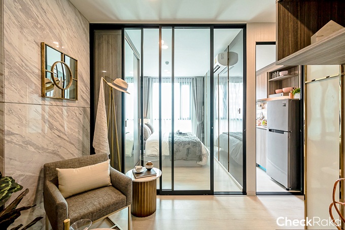รอบนี้เราจะพาไปชมด้วยกัน 2 แบบ เป็นห้องแบบ 1 Bedroom ขนาด 28.20 ตร.ม. และ 1 Bedroom ขนาด 33.40 ตร.ม. ตามไปชมกันทีละห้องเลยค่ะ เริ่มจากห้องแรก