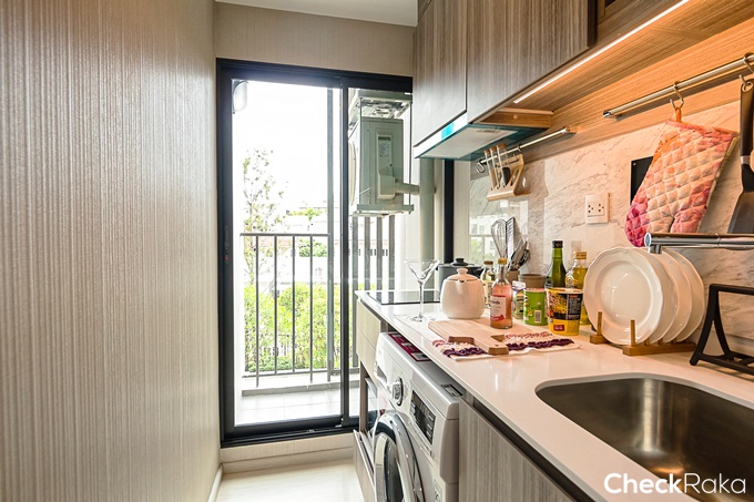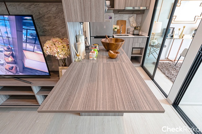 ห้องนี้จะได้เป็นครัวเปิดแยกส่วนเตรียมอาหารออกจากเคาน์เตอร์ครัว ออกแบบเป็นแบบมัลติฟังก์ชัน