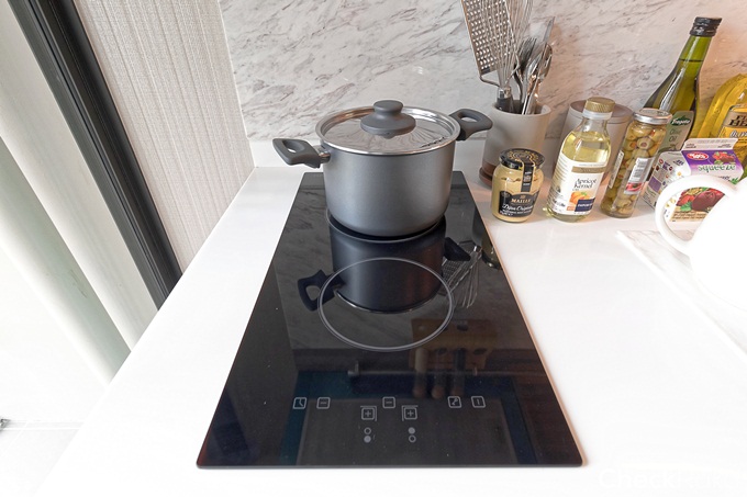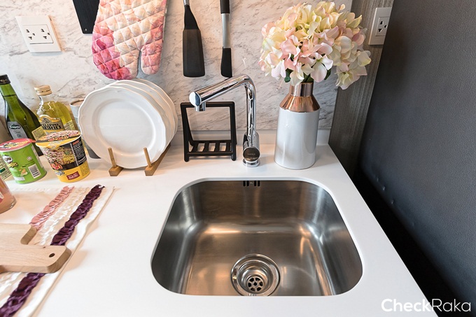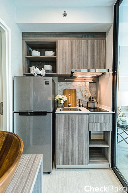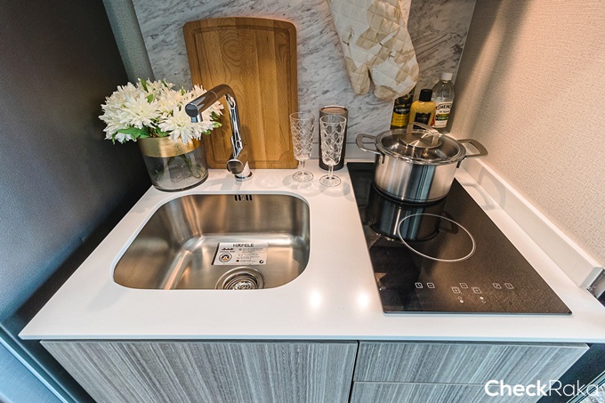 ยังคงได้เครื่องดูดควัน เตาไฟฟ้า 2 หัว และอ่างล้างจานแบบฝัง