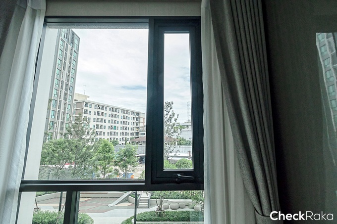 จากหน้าต่างห้องนอน เปิดออกมาจะได้วิวฝั่งถนนแจ้งวัฒนะ หรือฝั่งทางเข้าด้านหน้าโครงการ