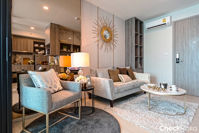 ขายแบบ Fully Furnished จัดเต็มเฟอร์นิเจอร์มาให้ครบของ Chic Republic design by Origin ทั้งตู้เสื้อผ้า Built-in, เตียง, โซฟา, ชั้นวางทีวี, ชุดครัว Built-in และเครื่องปรับอากาศ ยี่ห้อ Daikin Inverter ยกเว้นเพียงแค่ผ้าม่าน ฟูกที่นอน และเครื่องใช้ไฟฟ้าบางอย่างเท่านั้นที่ไม่ได้ให้มา เรียกว่าซื้อเพิ่มอีกนิดหน่อยแค่นี้ก็หิ้วกระเป๋ามาอยู่ได้เลย คุณภาพวัสดุที่จัดให้เกรดค่อนข้างดีที่ออกแบบโดยออริจิ้น พิเศษเฉพาะโครงการนี้เท่านั้น ภายในห้องตกแต่งมาในโทนสี Pink Gold/Rose Gold เช่นกัน