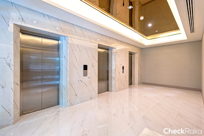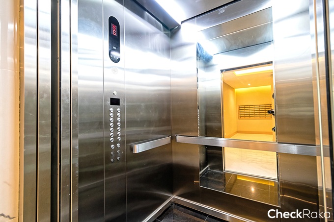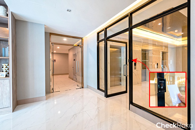 ภายในลิฟต์โดยสาร ตกแต่งด้วยกระจก ใช้คู่กับ Access card