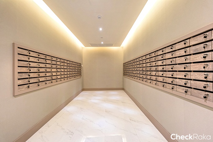 Mailbox แยกกันระหว่าง 2 อาคาร ออกแบบตกแต่งด้วยลายไม้โทนสีน้ำตาล