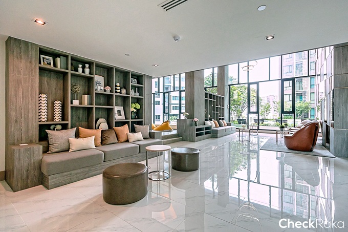 บรรยากาศ Lobby ของอาคาร B เพดานสูงแบบ Double Volume เช่นกัน